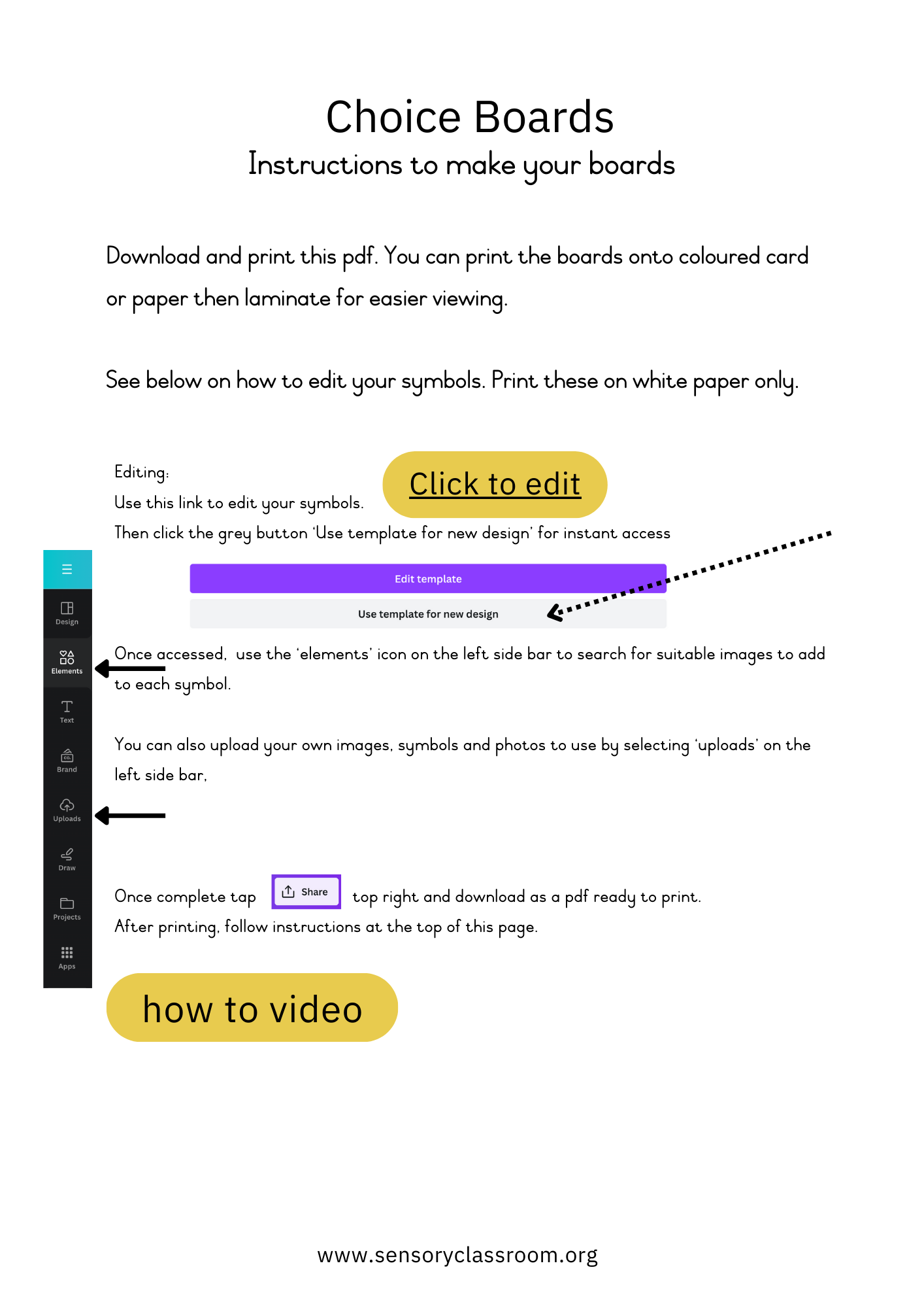 Descarga digital instantánea estos 3x tamaños de tableros de elección, instrucciones de uso y personalización y 2x tamaños de símbolos.