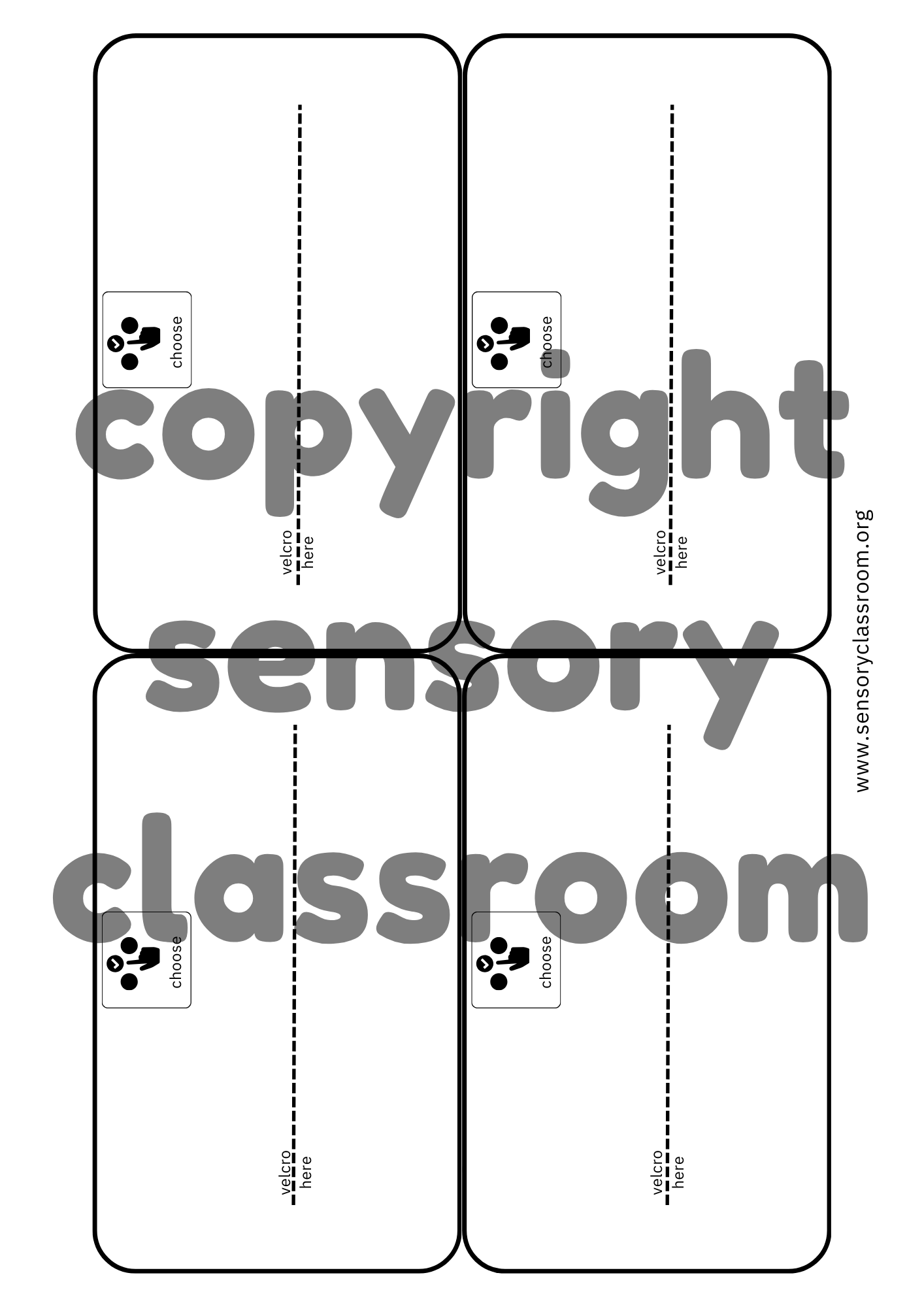 Para completar los tableros de elección necesitarás; papel de colores, bolsa plastificadora, tijeras, velcro, impresora.