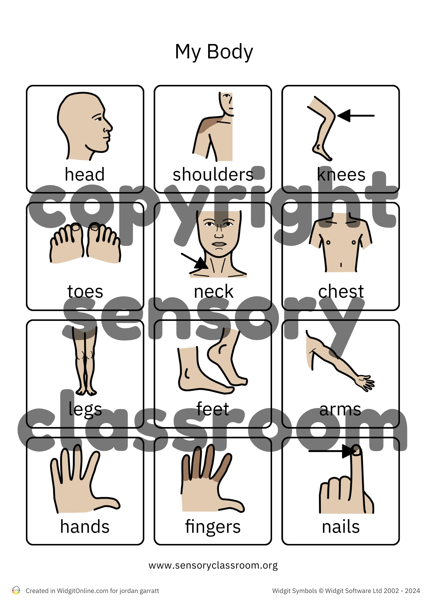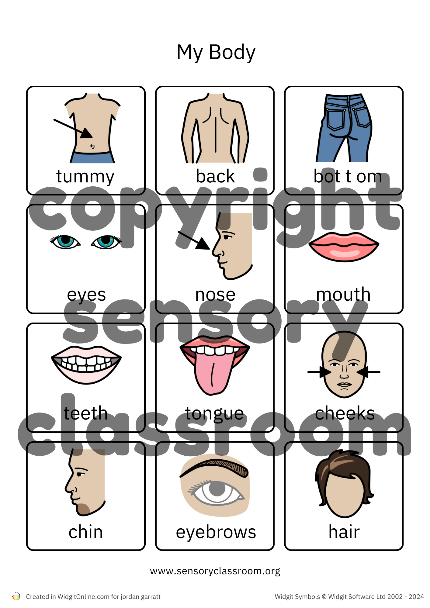 2 páginas A4 de símbolos sobre el tema del cuerpo.